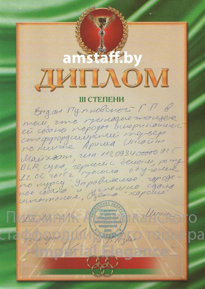 Любовь хозяина, его похвала - главная награда для Амстаффа, но разумная требовательность и строгость обязательно должны присутствовать. Если с воспитанием амстафа все в порядке , его достоинства засверкают всеми красками.